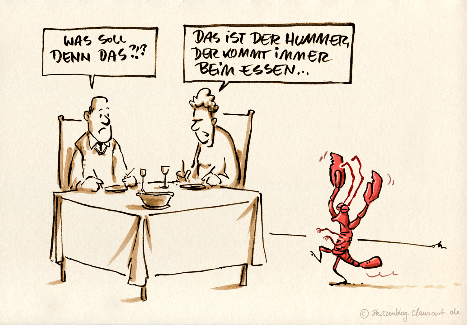 Der Hummer kommt beim Essen…